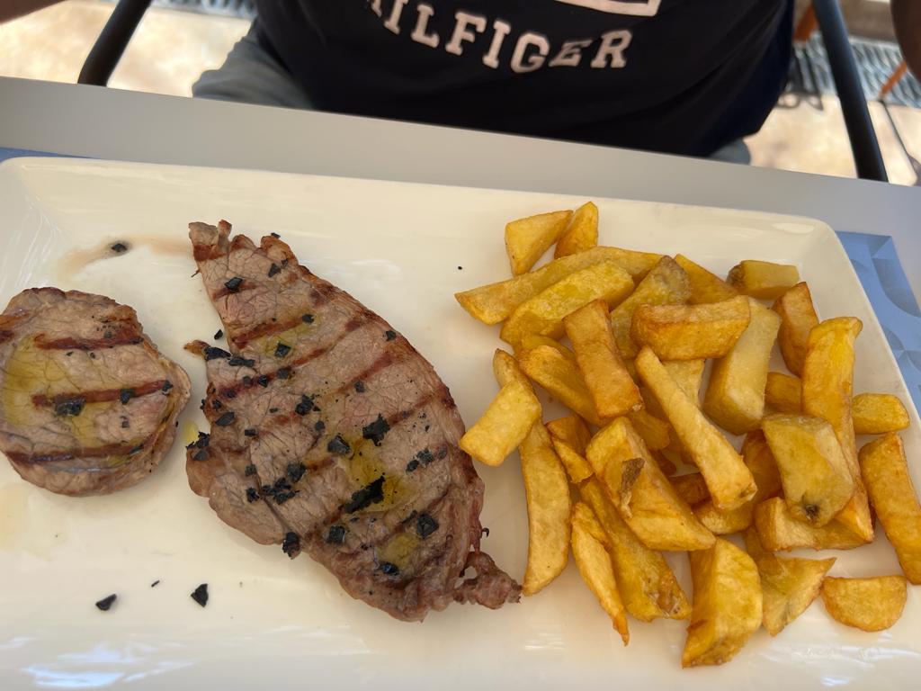 From the moment we arrived at the restaurant we were greeted by a very rude waiter trying to get us to go inside instead of staying on the terrace, he was trying to mock us for wanting to enjoy the views from outside. We find a table and manage to sit down, we clean it ourselves as he was busy with other tables and we await for our menus, 10 minutes later he asks that I get up from my chair and more to the other side of the table as he needs a part of the table for a new guest. We finally order after 25 minutes and we wait for the food to arrive. Eventhough we asked that all dishes are brought at the same time, they were ouf course not. With a gentleman and two ladies at the table, it is rude to bring food for him and let the ladies wait. 28 euros for a steak and they cannot grill it properly, I asked for medium and they brought me rare, I sent it back and I received the same meat, still rare and completely destroyed on the grill, charged as well for the garnish which on the menu is included (did not pay for it as it was uneatable). Mussels came looking really good, only problem was that some of them were raw, some were dirty and not cleaned, some were dead and we found as well seaweed and hair in the sauce, ended up beeing sick for rest of the night, thank god no hospital. Please avoid this restaurant if you do not wish for food poisoning and getting mocked by the staff. I want to say that the focaccia was good, but even that was underbaked. Very dissapointing experience and...