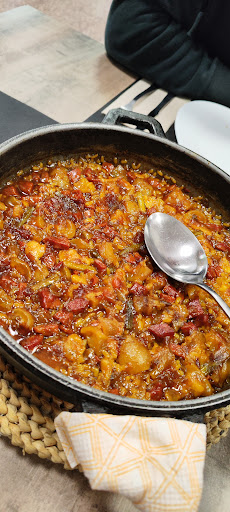 This out of the way eatery deserves greater recognition in Alicante, tucked away in a corner of San Gabriel it is very easy to overlook it. The reason for our visit was to try their tapa cofrada. The greeting was friendly, offered wine as well as the beer which is supposed to be with the tapa and provided with some unusual salted olives. I enjoyed them but my wife not so much. Then out of the blue and not part of our order we were gifted a slice of tortilla each. It seemed to be made with egg yolks only or certainly a high proportion of yolk to whites. Served warm it was a little runny but very tasty. Then on to the purpose of our visit the tapa cofrada. This was a large meatball served on a bed of Pajas (from a packet) and dressed with a tomato and pepper sauce. It was delicious, the best I have ever tasted. We will be going back for more. Incidentally, we visited just before lunch and they were busy setting up the tables, all were booked. Whilst we were there they received another phone reservation and the managed to fit another table in for two. This is a restaurant that goes the extra mile for...