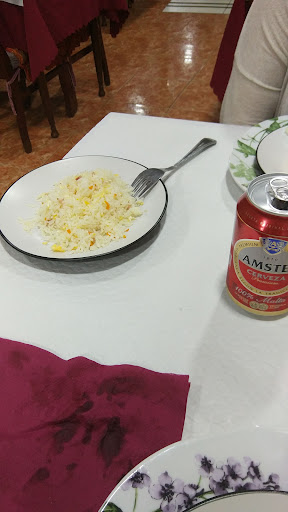 Son SÚPER TACAÑOS y bordes. Pedí arroz frito, lo que es un arroz frito con la carne o verdura que elijas, ya sazonado con soja y tal, así que es un arroz de color marrón. Pedimos arroz frito de gambas. Enviaron un arroz blanco con huevo revuelto y jamón york y un poquito de gamba con salsa dulce en cima del arroz (DULCE que no nos gusta), o sea, algo que NADIE va a comer. Llamo pensando que, siendo la buena cliente que he sido en esos 3 años, me van a cambiar la comida.