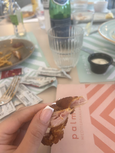 I went for dinner to Palmitas in Alicante, Spain, and ordered chicken tenders for my children, who are 2 and 4 years old. When I cut the chicken into pieces for them, some of it was still raw. We sent it back, and they brought a new batch. I checked two chicken tenders, which were fine, but as we continued cutting, we found more that were raw. We sent it back again because we didn't want our kids eating raw chicken and getting sick, potentially ending up in the hospital.
