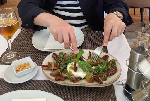 We shared a burrata salad and my partner had fish, while I had the Entrecôte. The food was good and the service was friendly and gracious.