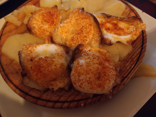 Having had just come back from Galicia, we missed the cuisine so thought to try this restaurant… the portions we were served were NOT Galician serving sizes like another post had said sadly & definitely NOT priced accordingly. The pimientos & grilled squid were good, however, one of the mussels (small portion even though we asked for the large portion) had a funny off taste to it & the beef “solomillo” which was more like a filet, was undercooked- if you’re going to serve the beef how you want, there’s no need to ask patrons how they’d like theirs. The cortados we had as afters were disappointing, but it’s not a cafe so can’t complain too much there. Overall, food was just okay but the price did not reflect that. Coupled with average slightly rude service & atmosphere, the same amount of money spent would get you much better everything in a different Galician restaurant...