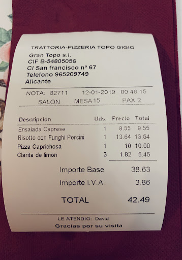 En definitiva, un restaurante que deja mucho que desear y con una relación calidad-precio bastante mala. Hay restaurantes italianos mucho mejores en Alicante y para comer "sin más", me voy a un Ginos.