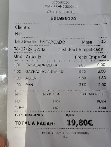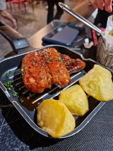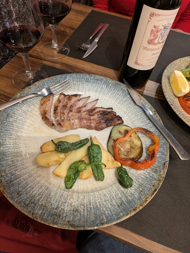 We went twice. Once for tapas when the place wasn't too busy and once for dinner when the place was as busy as it gets. Both times the staff were excellent, patient with our limited Spanish and much pointing at the menu. The cod croquettes were the outstanding tapas selection as well as the Patatas Almonte (a sort of creamy sauce with small peeled shrimp). Dinner was ribs, pork tenderloin & pork a la parrilla plus a side of grilled veg. Smiles all around. The one other main was salmon but it arrived overcooked and sporting a slightly fishy taste according to the diner. Given 80-100 diners in the place, it was full inside & out, the wait staff & kitchen did a heck of a job to keep things moving with some minor confusion. The owner was on the floor as well & I saw him wince occasionally but overall, a good job...