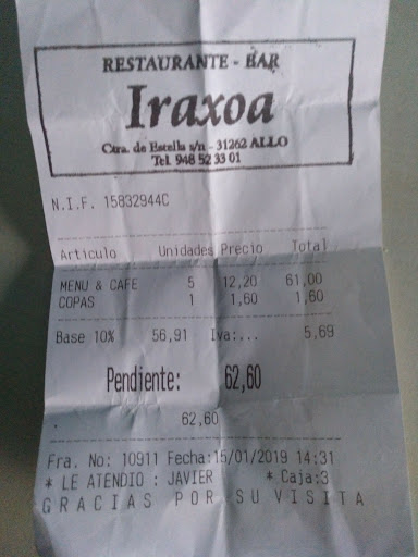 Read moreLlegas un lunes por la noche a un pueblico pequeño de Navarra y siempre habrá un plato caliente que llevarte a la boca. Con unos camareros atentos y a un precio razonable. Me sorprendió la oferta, más de cinco primeros y cinco segundos para una cena en una calle por donde no pasaba un alma es de agradecer. Al dÃa siguiente a la comida de mediodÃa, el comedor estaba...