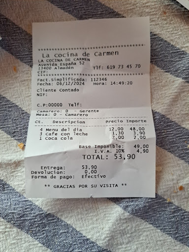 La comida q hace Carmen está muy rica, es casera, siempre trata de variar, y a veces sorprende con preparaciones nuevas e incluso algún toque decorativo y todo esto a precio asequible, ya q está en la Escuela de Ingenieros. Le da a todo muy buen punto.Y qué decir de los postres, los hace ella y tiene buen gusto y buena mano. Puedes ir a desayunar, a por un tentempié, a tomar el aperitivo, a comer, a tomar café. Yo voy a diario varias veces, ya q la cafetería está ubicada en mi centro de trabajo. Hay quien se lleva la comida para...