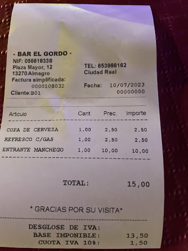 Read moreLugar tranquilo y muy típico de la Mancha, en toda la plaza Mayor de Almagro, justo al lado del corral de comedias que todo eso hay que pagarlo. En verano tienes la terraza con todas las vistas a la plaza y en invierno dentro del bar es acogedor con TV y todo, lugar muy familiar donde puedes hablar bien con tus amigos y familiares mientras te tomas unos vinos y unas buenas tapas de pisto o pipirrana, comida muy típica de la Mancha exquisita, los postres totalmente caseros están deliciosos, aconsejable los alfonsinos y el pan de Calatrava y la comida las migas y los duelos y quebrantos, los chorizos también están muy buenos. El camarero Raúl un hombre muy simpático, amable y muy atento de que no te falte de nada, muy serio en su trabajo, el establecimiento está totalmente limpio y aseado y los baños lo más importante también muy limpios, aconsejable 100% ir si pasas por Almagro y quieres pegarte un buen...
