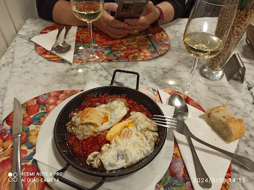 Read moreFuimos a comer allí porque habíamos reservado para ir al finalizar el Tour guiado. Local bien decorado y ambiente fresco y fuímos los primeros en entrar, luego vinieron mas clientes a los que atendieron y yo esperando por el solomillo. La comida muy buena ,queso frito con mermelada de tomate en un plato enorme, huevos rotos con jamón aunque no me gustan las patatas que estaban muy " aceitosas " ,croquetas mixtas y solomillo a la pimienta que al final nos lo llevamos por las prisas para no perder el autobús. No admiten tarjetas y solo pago efectivo y la dueña muy reacia a darnos una factura. Deben cuidar algunos detalles como el WC masculino que la cisterna pierde agua y no funciona el pulsador. Altavoz del techo suelto . La cocina muy bien , así como la presentación. La...