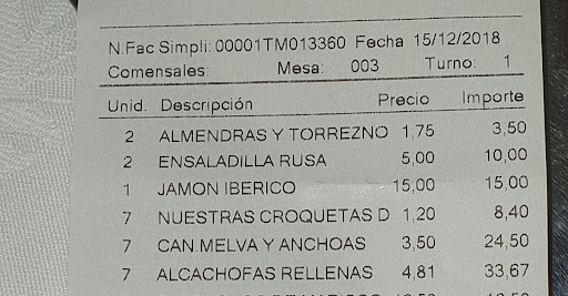 Read moreEstéticamente el restaurante es bonito y te da la impresión de que vas a comer de categoría...y de categoría no hay nada, el servicio muy lento.. entre plato y plato estuvimos esperando más de quince minutos,,las raciones eran justas...para gente comedora no son porque te quedas con hambre,,el plato estrella son los gazpachos..pero no tenían sabor,, pedimos un gazpacho para compartir y nos trajeron individual cuando tenían que haberlo servido en caldero..el precio es alto para lo que vale el restaurante eramos 6 y nos fuimos pensando que lo único bueno de la comida fue la torrija, no recomendamos y no volveremos... para gazpacho bueno mejor ir a la Ramona o casa Pedro,,allí no fallas!!!! Abajo me acaban de responder a mi comentario y voy a responder al propietario: si las raciones según se indica están calculadas el camarero debería de habernos aconsejado sobre las raciones y no nos aconsejó en nada!por otro lado,sobre el gazpacho,nosotros en ningún momento le pedimos al camarero raciones individuales,es más,cuando vimos que se nos sirvió en plato se lo dijimos y él admitió que se confundió.yo estoy embarazada, pedí un sorbete y cuando lo pedí me di cuenta que llevaba alcohol,yo no tengo por qué saber los ingredientes de cada cosa pero viendo y sabiendo mi estado el camarero tenía que haberlo advertido como me advirtió que la ensaladilla es pausterizada,así que lo siento,pero ya puestos..lo...