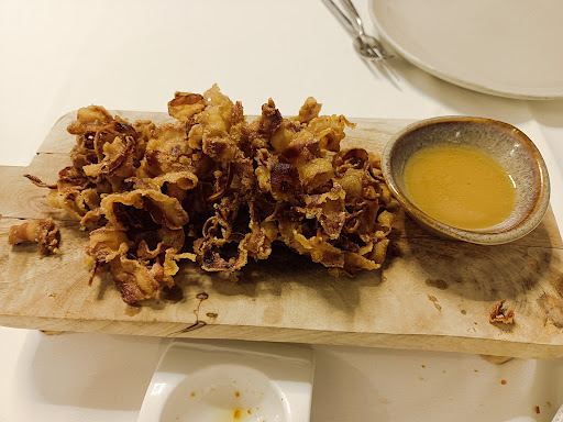 Read moreRestaurante muy recomendable para comidas o cenas en pareja y también si vas solo o acompañado de tus mejores amigos. Carta de vinos muy completa y menús refinados y bien presentados. Los postres están de lujo. Poco malo se puede decir de este sitio. El local no es muy grande pero es acogedor. está decorado con gusto. El servicio es estupendo y amable. Muy profesional y servicial, dispuestos a agradar en todo. El menú es algo caro, pero también dependerá de tus gustos y peticiones a la mesa. El arroz con carabineros fue toda una experiencia gastronómica, que seguro repetiré. 04/02/2023 - Hoy comida en pareja. Nos dejamos aconsejar y con los entrantes hemos triunfado. Tabla de quesos variados, salteado de sepia con ajetes tiernos y espárragos y un crujiente de morro y oreja con salsa de manitas. Para terminar un arroz seco con presa ibérica y pimientos asados. De postre una tarta de queso y piña colada. El vino fue un tinto de la tierra, Mar Garcia. Todo un descubriendo. Y para terminar un orujo blanco, Abadía da coba, café y manzanilla. Dejo fotos