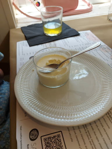 Read moreВсе было хорошо, пока не стало появляться больше народу. Тогда персонал начал теряться, хотя их достаточно много. Все испортило доставка десерта. Кроме прочего заказали на десерт Panacotta. Обычно она идёт в 2 слоях: нижний слой - белый мусс, верхний слой - лесные ягоды, с мятой. В итоге нам принесли просто полуфабрикаты- Нижний мусс. Когда обратился к официанту, он унес начаты мусс, залил туда ложку сиропа и вот весь десерт. Сказал, типа, что клиенты то хотят ягоды, то не хотят... но никто нас не спрашивал ни о чем. Хотя сам Panacotta без ягоды, это как пицца без ингредиентов... только корж: Вы ведь не уточнили как хотите. Это называется некомпетентность персонала. Учитывая то, что у дочки в этот день был день рождения, и она знает прекрасно в свои 7 лет что такое Panacotta, то все ощущение праздника у ребёнка пропало. Благо она быстро отходит. Все остальное было неплохо. И персонал остальной очень приветлив. Но, из за таких мелочей, видимо сюда больше дочка не захочет. Не могу советовать заходить вам сюда или нет... решать вам, это может быть единичный случай. Решать вам. Пицца...