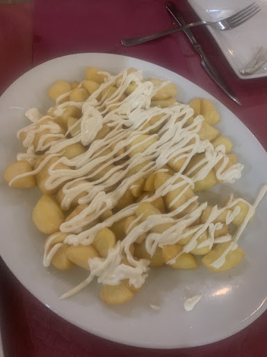 Read moreSorprendente lugar. Al entrar parece un pub, aunque tiene dos comedores, uno interno con barbacoa. No parece que hagan comidas y tampoco hay carta fuera. Fue un agradable descubrimiento que tenían menú, 18 euros un poco elevado pero merece la pena, se come bastante bien. Ensaladilla y verduras muy rico, de segundo cordero asado y rabo de toro muy rico 😋. El chico era muy agradable y aunque tiró la cerveza y casi el café era amable. El flan no era casero y tardó un poco pero estaba bueno. Pan, bebida y café. Mejor que estar en la plaza del pueblo. Recomiendo. Las patatas...