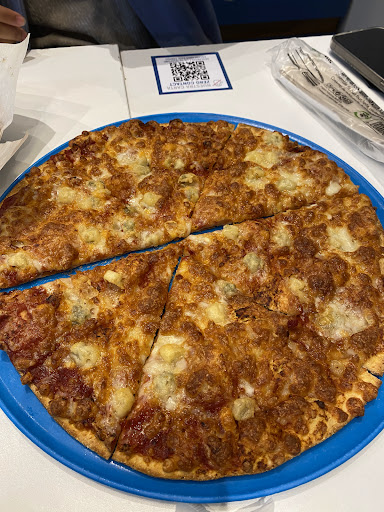 Nefasta experiencia con una de las empleadas que es una maleducada e impresentable. Vamos todas las semanas a este Domino's pidiendo el menú "Come y bebe" para tomar en el restaurante. Hoy nos sobraron 3 trozos de pizza y educadamente me acerqué al mostrador a preguntar si podían darme una cajita para llevarme los 3 trozos que me sobraron, ya que los había pagado y no quería que acabaran en la basura. La empleada, rubia y con gafas que además se negó a decirme su nombre, se negó a que me los llevara. Tranquilamente les dije que me los llevaría porque eran míos y no quería tirarlos a la basura. De repente esta empleada salió del mostrador y fue a la mesa, donde aún estaba sentada mi pareja, me arrebató los trozos de pizza y los tiró a la basura para impedir que me los llevara. Me quedé estupefacta ante esa desfachatez y poca vergüenza, por lo que obviamente cumplimenté la correspondiente hoja de reclamaciones. Entiendo que esta política existe para evitar abusos por parte de la clientela que quiera llevarse pizzas enteras después de haberse saciado en el buffet, y así se lo dije a la empleada. Pero nosotros éramos consumidores recurrentes en este local y solo se trataba de 3 miserables trozos de pizza que queríamos evitar desperdiciar. El trato y comportamiento de esta empleada ha sido aberrante. Nunca más volveremos a este local ni lo harán las personas...