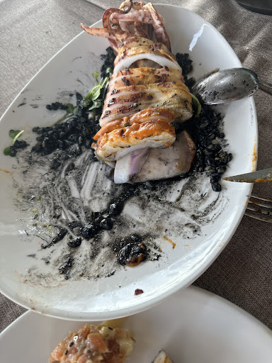 The menu is eclectic Mediterranean with interesting rabo (ox tail) croquettas, a whole zucchini stuffed with pumpkin pate and a cheesy risotto being great choices. Seafood dominates, but there are several beef choices as well. Food was freshly prepared and of the best quality. A tuna and local greens salad was a substantial and delicious starter.