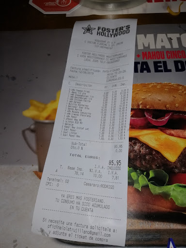 Read moreWe have visited Fosters Hollywood at least 3 times before in Parque Almenara,Lorca ,where the food has always been excellent . However yesterday we visited the branch in the Centro commercial shopping centre I Almería . I must first stress that the waitress was absolutely excellent . The starter was really very good , but the main course was a different matter ,my husband ordered the Newyorker steak and i the rigatoni pasta .
