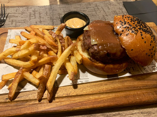 Read moreKarbón, que debería renombrarse a Tardón. En cuanto a la comida quedamos satisfechos: ingredientes de calidad, hamburguesas variadas al gusto de cada cual, punto de la carne perfecto, entrantes apetecibles y gustosos, y precios adecuados para la calidad que ofrecen.