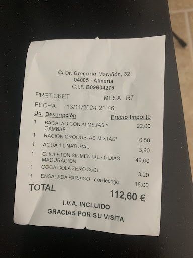 Read moreOn our way back from a quick trip around Almería, we gave in to a sudden family-wide carnivorous craving and stopped here. The place has a wannabe-fancy vibe, but it pulls it off—good service, solid delivery. Big points for the meats served with hot stone so you can finish them to your liking at the table (everyone’s happy with their perfect doneness!). Friendly spot, would come back. No...