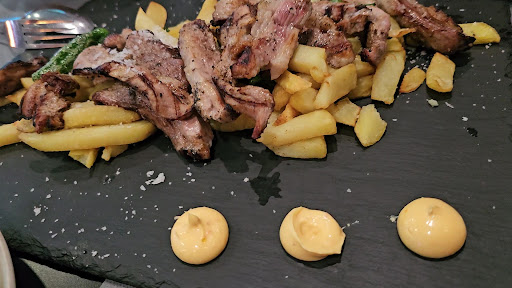 Read moreFuimos a cenar 3 personas y escogimos la carrillada ( 20 euros) que a pesar de estar muy buena, era escasísima, 4 trocitos de carne sobre un puré de patatas ( Parmentier le llaman, para dar mas caché,) luego un " secreto" con huevos rotos ( eran patatas medio durillas con unos huevos demasiado fritos y por consecuencia sin yema y unos trozos de lo que yo diría chuletas de cerdo) , yo misma preparo secreto al chimichurri y la carne no se hace a tacos, el secreto debe cortarse en láminas finas y limpiarlo de grasa, no me gustaron nada esas dos, luego el plato de tomate Raf muy bien porque a quien no le va a gustar un tomate Raf?? pues eso, no tiene historia ni arte, cortas 2 tomates y le pones ventresca, no mucho ehh, y un poco de ajo picado, pero naaa, eso si, vale 12 euros ( sabemos que el Raf es oro..) Rebañamos el plato con aceite de oliva con las 4 rebanadas de pan que te cobran 1,50 €!!! hasta la bolsa de picos y regañas me la comi. El postre merece mención a parte, el camarero nos aconsejó un surtidito de postres de los que hay en la carta, pero no era cierto, en mi surtidido no habia ni tiramisu, ni tarta de queso ni red velvet, sino 4 pastelitos con base de aluminio y muy malos. Creo firmemente que este establecimiento no va a durar mucho ya que 61 euros por esa cantidad de comida hemos salido descontentos, y por las opiniones que he leido, mas de una persona. ( de beber 1 copa de cerveza y 1 botella de agua) . No volveremos...
