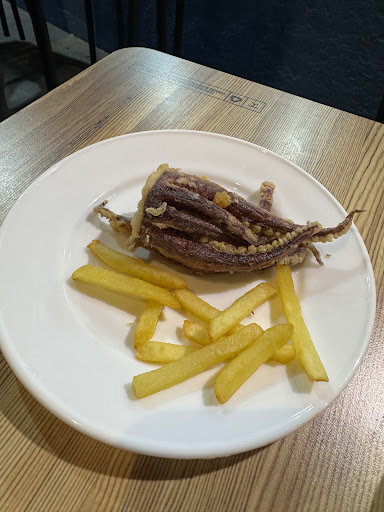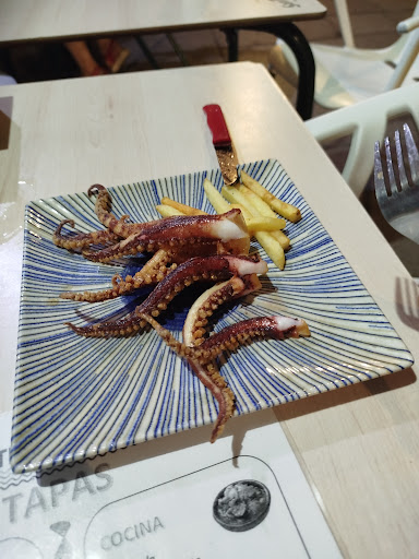 Fuimos 5 adultos y un niño. Pedimos 5 bebidas cada uno (con sus tapas) y 3 raciones. El pescado es fresco y de una calidad excelente: pedí pota negra (dos veces), gambas fresquísimas, croqueta de gamba y bravas. Las ración de croquetas variadas eran caseras (gambas al pil-pil, cocido, pollo, boletus y jamón), todas buenísimas. También probamos gallopedro y jibia a la plancha, raciones generosas y buenísimas.