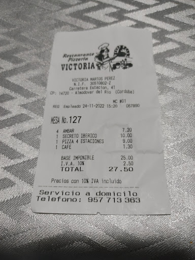 The food was very tasteful. We had a pizza and grilled chicken. The price was very cheap. Service was good. The waiter was doing every table by himself. Chapeau. Everyone who visits castle goes across the parking for food. Don’t do that. It’s a tourist trap and expensive. If you are by car drive 5 minutes to the village and eat here at Pizzeria Victoria. Great...