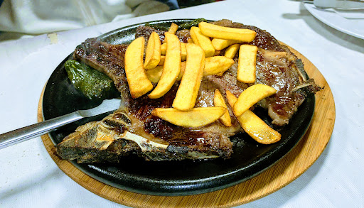 El chuleton te lostraían en un plato caliente para que se siguiera haciendo. La persona que lo pidió hecho sin saber este detalle al final se le hizo demasiado en el plato y sabía a zapato el filete.