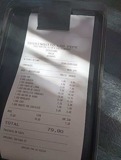 Read moreEstaba veraneando por Matalascañas y me dije, por qué no tomar una fritura? Y nos decidimos por EL RESTAURANTE PEPE, que acierto. Les decimos que somos cinco personas, nos preparan unas mesas, nos ponen unas aceitunas, mientras elegimos que comer. La carta de por sí, cara, pero un día es un día, me dije. Pedimos dos frituras variadas de pescado, dos ensaladas, un revuelto de bacalao y dos raciones de calamares fritos. De bebida pedimos botella de agua y una botella de vino y casera. Estábamos todos expectantes. Y de pronto aparece el camarero con dos platos Llanos de fritura de pescado, y en cada plato en el centro una cebolla rebozada también. Vamos que casi había más cebolla que pescado. Pensé, bueno lo compensarán con las dos raciones de calamares. Y sí, sí que lo compensaron, sí. Nos traen los dos fritos de calamares. Calamares, no, calamar por plato, porque a no ser que se haya comido uno a todos los demás, en el plato solo había uno. Y eso que era una RACIÓN!!! Acabamos, no nos resultó difícil, más bien nos quedamos con hambre. Y pedimos la cuenta. SORPRESA: 103€ de esos, 6€ solo por pedir, POR PEDIR. Vamos que por sentarnos y hacer lo que tienen que hacer, que es atendernos, nos han cobrado 1,20€ a cada...