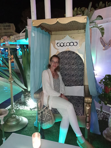 Pub-discoteca al aire libre en pleno centro de Matalascañas. Parking de pago cercano. Dispone de varias terrazas con distintos ambientes. Todos muy cuidados y confortables, césped, arboleda autóctona, piscina y hamacas que confieren al lugar un aspecto muy atractivo, especialmente con la cuidada iluminación nocturna. La música en el par de horas que yo estuve fue una mezcla de chill-out y ritmos houses, a un volumen muy adecuado para poder oirla bien y poder entablar conversación. La chica que nos atendió en la mesa muy agradable. Hay numerosos camarer@s que atienden con suma rapidez. La edad de la clientela es variopinta, desde niños acompañados siempre por adultos hasta personas de la tercera edad. El precio razonable para la ubicación donde nos encontramos. Desde 5 € en adelante hay una variedad enorme de copas. Resumiendo, creo que es el lugar de referencia de la noche en...