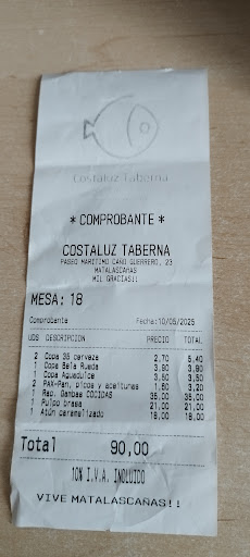 Read moreDescripción breve: largo tiempo de espera y calidad pobre para el elevado precio. Llegamos y un camarero muy amable nos recibió y nos permitió cambiar de mesa a una con más sombría. El problema empezó cuando ese camarero dejó de servirnos, porque cada uno tiene un cometido diferente. Tardaron en atendernos tanto que hasta una mesa de al lado, la cual llegó más tarde, nos prestó su carta porque no nos habían traído la nuestra media hora después de solicitarla. Por suerte, nuestro camarero amable, pasaba de vez en cuando y, sin ser su cometido, agilizaba a sus compañeros para que nos tomasen nota. Nos toma nota una camarera y es otro camarero distinto el que nos empieza a servir los platos. El primer plato llegó a tiempo (18 gambas de calidad media por 35€), un rato más tarde llega el segundo plato (un atún poco hecho, pero rico, aunque con demasiado pimentón) y casi 2 horas después de estar sentados en el bar y tras pedirlo más de una vez, una camarera nos comenta que nuestro tercer plato (rejos de pulpo fritos) lleva media hora pululando sin saber a qué mesa pertenece (de nuevo nuestro camarero amable intercede y nos agiliza la comanda). Llega este último plato y, como es de esperar, recalentado a tal punto que el trocito pequeño de tentáculo de pulpo no estaba frito, estaba carbonizado y excesivamente condimentado con pimentón, todo ello por un módico precio de 21€. Con el pan hay que tener ojo porque algunos están mohosos. Hasta nuestro camarero amable se disculpó y nos ofreció unos chupitos gratuitos. Es por él por el que siento esta baja valoración, él merece un 10, pero el resto deja mucho que desear. NO...