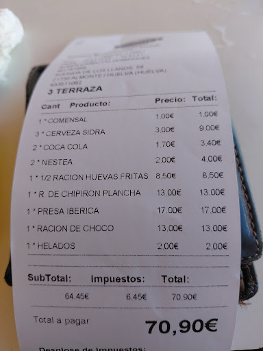 Read moreAtención pésima. Segunda vez que voy y la última. Te sientas y no te atiende nadie a pesar de pasar el cámarero. Una vez pides tardan una eternidad en traer la cómida aunque el bar esté medio vacío. No traen la comida a la vez para que puedas comer todos juntos y algunos platos llegaron para el postre. Lo peor la atención del camarero rubio, atiende enfadado, suelta la comida en la mesa de malas maneras, no responde al hablarle...en fin, parece que te esté perdonando la vida. No vuelvo así me...