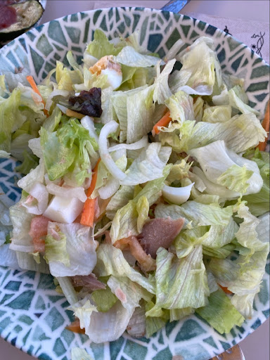 Además, había dos perros de la zona, los camareros no les dice nada y según va llegando la comida, van a tu mesa y te ladran para que les des algo de comida.