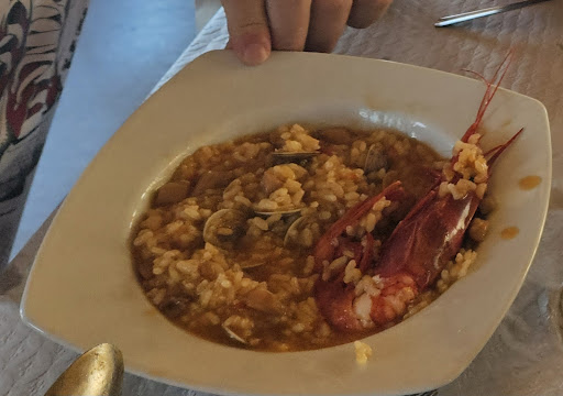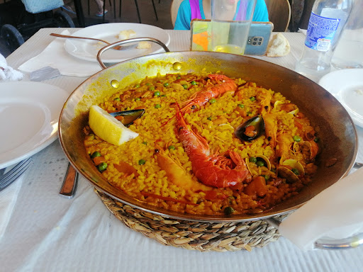 Solo voy a dar mi opinión con la intención de que, si así lo creen oportuno, se mejoren algunas cosas. Comimos 3 personas, previa reserva telefónica. Pedimos almejas al ajillo, sardinas, pan de pueblo con anchoas y queso, y arroz con bogavante. Al llegar no me gustó un gesto de la persona que gestiona la distribución de reservas y mesas, pues sin darme cuenta le hablé sin pedir permiso, y obtuve una respuesta, bajo mi experiencia, poco profesional, al presentarme su mano con la palma abierta y sin mirarme se dirigió a otra persona. Así que esperé mi turno, le pregunté si ya era el mío y entonces me atendió. En nuestra tierra seguimos teniendo la mala costumbre de prejuzgar por las vestiduras o apariencias, y todos los clientes debemos ser tratados por igual, llevemos pendiente, bañador o camisa de rociero. Preguntamos por cuántas unidades venían en la ración de sardinas, el camarero nos dijo que 9 o 10. Vinieron 7, y para mi gusto les faltaba cocción y sal. Las almejas estaban buenas, pero para ser una ración me pareció una cantidad escasa. El pan de pueblo muy bueno. En cuanto al arroz con bogavante.. al usar el mismo caldo que para el arroz de marisco, al final es un arroz de marisco, con un bogavante encima. La verdad que no cumplió las expectativas, pero como arroz de marisco está aceptable. La cosa es que el precio es sustancialmente superior si trae el bogavante encima. En general, buena relación calidad-precio, pues para ser un chiringuito agradable a pie de playa la cuenta fue 112€ con bebidas y café, pagamos 120€ para dejar propina, pues en general bien.. y estas serían mis humildes consideraciones a mejorar. Al no sorprenderme, no lo recomendaría como un sitio donde vas a comer super bien, pero para un día así que estés en la playa y no te hayas llevado comida, está...