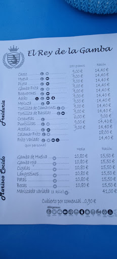 Read moreEstupenda zona de bares en esa plaza,fuimos 5 amigos a comer pescado y mariscos al supuesto rey de las gambs...pedimos una bandeja de fritos variados y otra bandeja de las de mariscos de 68euros las cuales el camarero llamado ale nos metii por los ojos...resultado...nefasto.porque el marisco seco y sin sabor a la sal que debe de llevar y el frito variado la mayoria congelado tanto los chocos como las acedias como las pijotas...y teniendo el puerto de huelva al lado se permiten el lujo de decir pescado fresco...perdona...añado mas el supuesto jefe fumando dentro del local en la parte de la barra manipulando alimentos y con la pandemia que esta cayendo,el camarero q he mencionado anteriormente fumando en la misma puerta y antediendo a los comensales....resultado...no aconsejable los hay mejores como por ejemplo el que esta justo al lado...que el trato fue magnifico y cordial...y el marisco ese si era fresco al igual q el pescado...el rey de las gambas nada aconsejable y aparte de no calidad precios super...