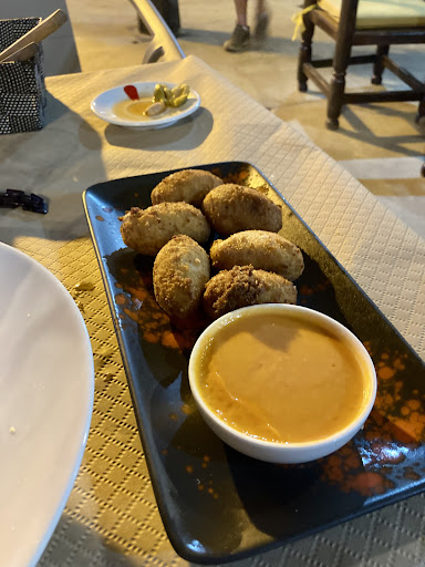 Read moreBest dish of the trip so far! Before someone wrote "simple food, little spices, good portions". Might be true for the tappas, but my main course and desert blew my mind! I got "Bacalao-Confit mit Bacon-oil (fried slices of jamón), on a base of spinach and pine seeds, gratinated with fried garlic Aioli". Just taste the combination, so many strong flavours, but not clashing, combining to a delicious and not at all small meal. The argentinian caramel-cake was big, sweet, but with a rather fresh cream, so again well balanced. Best thing was, I never really read the menue, but followed the curly waiters recommendations, which he gave me willingly and neither did he chose the most expensive, nor the everyone-will-like-it-option, but some dish the restaurant can truely...