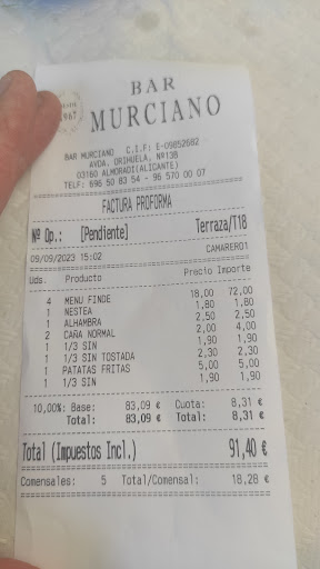 Read moreAlucinante¡¡ te traen una carta sin un solo precio. Se lo dices y sale el propietario a decirnos mas o menos lo que valen las raciones, que como los precios del mercado suben y bajan pues pone los precios en funcion de esto. Algo totalmente ilegal por cierto. La comida estaba bien. Bien cocinada y cantidad correcta. Lo bueno es al traer la cuenta. Nos traen un ticket con el total cosa totalmente ilegal tambien. Al decirle que quiero la factura desglosada con los precios me trae un ticket cn todos los precios ya de no muy buenas maneras. La mayoria de precios correctos, pero nos cobra por 6 mejillones 5€ y por un PLATITO DE PATATAS 5€. Le digo que el precio de las patatas esta mal y me responde que es lo que...