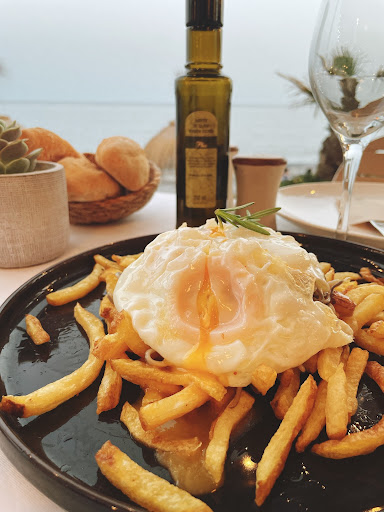 Read moreEmpezaré comentando que el servicio fue nefasto, el “encargado” creo que le debieron de poner botox en la boca porque ni una sonrisa pudo dedicarnos y ya no hablemos siquiera de tener una mínima educación y buen hacer frente al cliente. Pedimos unos huevos rotos con gulas al romero. De romero tenía una triste ramita, porque de sabor nada, los huevos estaban pasados y las patatas del día de antes, les faltaba además de un poco más de cocinado para lograr una textura adecuada, un poco de sal. Aunque eso es mejor a que te lo salen, que estoy más que segura de que cometerían ese error. De segundo nos pedimos unos mejillones en “salsa americana”, que de esta solo llevaba el puré de tomate y algo de pimentón, sabor nulo. Para colmo de males, estaban tan hechos que las mismas cáscaras se habían roto y no había bocado que no nos llevásemos un trozo. Los mejillones había que pescarlos en el fondo de la olla, se habían desprendido de tanta cocción, y no sabían a nada. Lo único bueno fue el vino La Guinda, que no nos recomendaron ellos, por cierto. Y ya para terminar nos regañaron (sí sí) como a dos chiquillos por vapear, alegando que no se puede fumar, cosa que no hay ley existente que prohíba hacer tal cosa (vapear) en una terraza totalmente al aire libre. Se pueden decir las cosas con educación y sin hacer sentir mal a las personas. Mucha pena que teniendo una situación tan privilegiada cometan tamaños errores. No me extraña que el primer restaurante del paseo esté a reventar mientras que el de ellos permanezca...