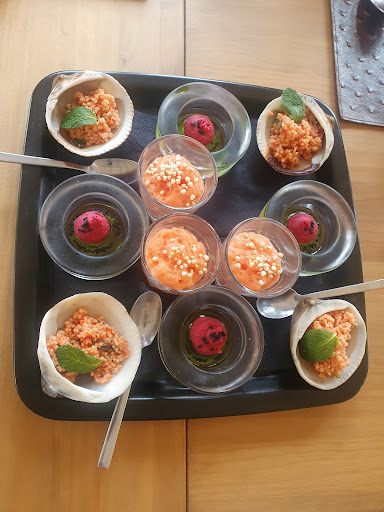 A menu that charges 50 euro for 5 dishes cannot consist of such humble ingredients, i was expecting a lot more. The chef's entrants were plain and tasteless: a so called "seaweed salad" with a spoonful of plain white cold boiled rice and a few strains of seaweed on top, some orzo pasta with a bit of curry flavor, and a tiny couliflower drink (quite tasty). The second dish, a sole fish terrine was just some very cold boiled potato, no trace of fish, with a tiny layer of tomato sauce and some green leaves on top. Zero flavour. Then we got some nice fish/mussel soup with raw mushroom, tasty. The main course was a very humble chicken pot au feu with lots of cream and some vegetables and potatoes, taste was nice, but it was far from spectacular. The dessert was some berry sorbet and chocolate icecream that tasted of powders. I am sure they can do a lot better than that, but for that price, I expect and deserve something way more sophisticated, all the ingredients for that meal would cost less than 4 or 5 euro in any supermarket. I was far from impressed, that menu would have been ok for 20 euro, maybe. Not a place...