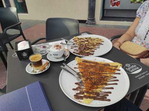 Pero... al llegar nos sentamos colocando nosotros las mesas ya que éramos un grupo de 6 personas y eran mesas de 4 o 2, hasta ahí, normal. Al pedir, 5 de nosotros pedimos exactamente lo mismo, una media tosta de pan de cereales con pavo, queso y aguacate, toma nota y vuelve y nos dice que no hay pan de cereales que tienen que ser medias tostas normales, venga, va, no pasa nada. Vuelve y nos dice que no hay pavo, que si puede ser York..., venga va..., no pasa nada. Luego viene y nos dice que le falta no se qué más, al final dos de nosotros prefieren pedir un crep. Finalmente nos sirven los cafés y las tostas pero ni rastro de los creps... Pasados 40min, le recordamos que no ha servido los creps, a lo que responde: Es que los tienen que preparar mi jefa y no sé. Total que le decimos que lo deje que ni se moleste, y se lo comenta a su jefa y esta se encoje de hombros y dice: vale. Importandole bien poco que quedemos desatendidos. No voy a volver, ni se lo...