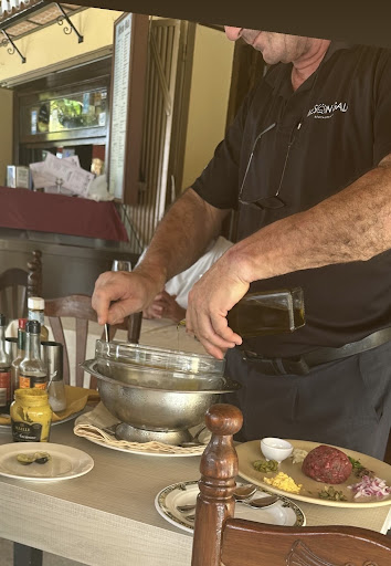 Ha venido una de las camareras dando servicio en la terraza para tomar comanda y no sabía absolutamente nada , por lo que se ha llamado a otra que por desgracia le ha pasado igual . La pregunta era fácil ....... " Hay algún pescado fuera de carta ?" Y .... Que lleva la raya a la mantequilla negra? Ha tenido que preguntar las dos cosas y al final hemos pedido la raya sin saber que llevaba .