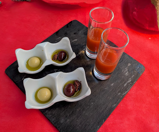 Cons: The quantity of food is disproportionate for a tasting menu. I understand that the Almunecar crowd may expect lots of quantity for a menu that is pricier than the average in the area, but it is just too much food. Some of the dishes were just banal or failed - albeit creative - attempts at reaching a high level of refinement (e.g. the lettuce dish, the "croissant with scallops", or the main dessert). The waiters did get busy at the end and didn't keep the wine pairing on track until the end, but that wasn't a big issue.