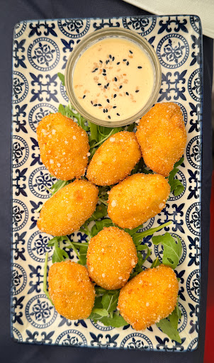 The menu features exquisite Spanish-inspired dishes. Highlights include monkfish croquettes, the asparagus wrapped in crispy serrano ham and the succulent ribeye steak with a perfectly prepared jacket potato