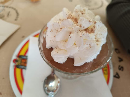 Los postres son todos caseros y nos hemos decidido por una mousse de chocolate, la cuel estaba buenísima. Muy cremosa. Pudding de queso manchego. Nos ha encantado. Muy suave y cremosa.