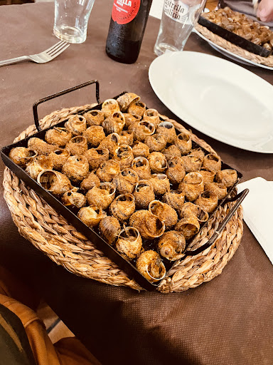 Restaurante con una decoración peculiar, calidad precio correcto, menú caracoles Domingo con café 24,5€ El servicio correcto y atentos, nos sirvieron bastante rápido Tengo que decir que hacía mucho que no comía caracoles, aunque me avisaron que si no estaban bien hechos me lo volverían ha pasar, me salieron unos cuantos con babas y ya no me los pude acabar (no tengo claro si es por poco hechos o por falta de limpieza, mi madre los ponía en harina durante un tiempo para que no hubiera el problema de las babas😅) pero bueno ya lo se para otra vez Situado en una urbanización muy acogedora con mucha zona verde