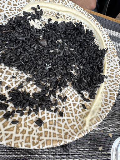 Primeros platos: • Alcachofas de bote. Y no lo disimularon. Bote. Sin poesía. • Arroz negro. Madre mía el arroz.. Seco. Negro. Negro tipo “me he caído dentro del bote de Titanlux”. De verdad, parecía que lo habían pintado más que cocinado. Ni sabor a mar, ni sabor a arroz, ni sabor a nada. Mi pareja no pudo terminarlo, y mi pareja come hasta el pan rallado suelto de la encimera. O sea, gravedad.