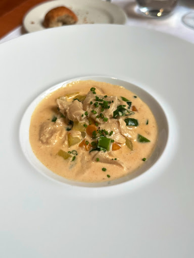 Read moreDas Ambiente war schön. Aber das war es fast schon. Der Kellner war relativ unintetesdiert. Er war nicht unhöflich, fragte auch immer wieder mal jemanden von uns 5 ob es demjenigen geschmeckt habe. Die Antwort interessierte aber nicht wirklich. Optisch sah das Essen hervorragend aus. Geschirr. Acklivh und von der Konsistenz war es leider nicht immer so. Das Kalbfleisch war hervorragend. Sehr zart. Das war vielleicht weniger das Ergebnis des Kochs, als das Ergebnis des Metzger. Das Lammfleisch hingegen war eher faserig und nicht so einfach zu essen. Eines der beiden Teller war dazu kalt beim Gast angekommen. Es wurde aber nach der Beschwerde aufegwärmt. Die Fischsuppe? wurde ohne die Möglichkeit sich danach die Hände zu reinigen gereicht, obwohl dort ü. a. Garnelen und Krebstiere drin waren, welche mit den Händen gegessen werden mußten. Der Darm der Tiere war nicht entlehrt, was eine ziemliche Sauerrei auf dem Teller ergab. Das vegane Menue war gut. Natürlich Geschmackssache wie immer beim Essen. Die gefüllten Cannelloni zu Viel für eine Vorspeise. Die Konsedtenz sehr Merkwürdig. Die Füllung seltsam. Der Nachtisch war gut, auch wenn ni nicht jeder Mann Geschmack. Wir hatten den Eindruck k, dass in der Küche nicht wirklich gekocht wird. Vielmehr wird das Essen vorwiegend aufgewärmt, und dann schön auf dem Teller trapiert. Wir hatten den direkten Blick k auf die Küche. Der Nachtisch dauerte sehr lange, is er auf den Tisch kam, obwohl er in der Küche lediglich aus einem Schrank geholt wurde. Wir haben alle gerätselt, wie die Küche zu so vielen Auszeichnungen kommen konnte. Wir haben des öfteren in einem Restaurant mit gehobener Küche in der Sternenklasse gegessen. Dieser Qualität kann diese Küche nicht das Wasser reichen. Für dieses Restaurant ist mir mein Geld zu schade. Wir werden nicht mehr...