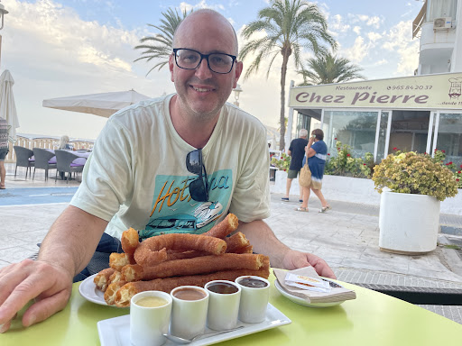 Read moreOur favorite stop at our evening walks along the beach of Altea and Albir. The location is perfect, right on the beautiful Altea boulevard with stunning views on the sea, the sierra Helada with the Albir lighthouse on the right and the Bernia mountains and the Ifach on the left. The waiters are very friendly, fast, professional and helpful. The green tea is the best she ever had according to my wife. I prefer the excellent capucino. And they have a choice of specialty coffees, icecream and their famous chocolats and always fresh churros. Go there, you will not be...