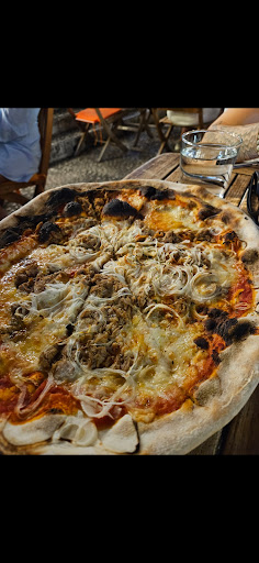 unfriendly people, bad food and no english speaking person. We were there every year but we will not return anymore. It's all about the money €€. Pizzas are burnt, they came also together with the starters. There was not enough space on the table so we asked for a later serve and we got them after the starters again. Totally cold, probably they just left it in the kitchen instead of heating. It was not delicious, cold and as you see burnt. After asking for another one, they replied it's normal that they are so dark. (black=burnt) After one hour we were forced to leave for other guests, (we reserved and didn't even finish with wine and drinks) So summary: Go to another place, there is nothing you miss here. next to the church 100m above this restaurant are many nice restaurants and...