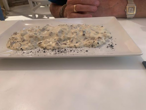 Read moreFirst visit to this bar today, good location on the edge of the water. Coffee was good, but then I decided to have lunch and ordered the bacon and mushroom crepe at 12 euros (not cheap). When it arrived I was shocked at the presentation, it resembled a plate of vomit, decorated with black salt (see photo). Forever hopeful, I started to eat it, there was a crepe buried beneath the mountain of bottled or canned sauce, something that barely resembled a mushroom and I think there was bacon in there, but the taste was chemical and nothing more than salt. Needless to say I left most of my meal, I did not complain as I did not have the chance, the waiter did not return to our table and I had to go the the bar to ask to pay my bill. This is utterly sub-standard food and particularly at this price. We will not return to eat and would not recommend...
