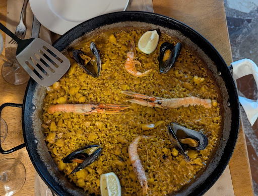 Really worth it! I'm not a paella expert, but I think this tops the best I've ever had in Spain. The place is a bit hidden off the main road between Altea and Cap Negret, easy to miss so keep your antennas tuned. There's safe and ample parking on premises by the main building. We were here on a Sunday 9pm, a few tables were available yet but it started to fill up, so we suggest to call in advance to reserve a table. Friendly and efficient service, the staff was lovely, and as I mentioned amazing paella but also fantastic prices. A glass of great verdejo wine for 3 euros? Nice espresso for 1.50 euros? Imagine the cost of having this experience in the US... :) it's all inviting you to try all the appetizers, deserts and drinks without going broke and enjoying awesome food. Well done! We had the seafood paella which was out of this world. Pan con tomate and pimientos del padron for appetizer. Cheese cake and Catalan cream for dessert. And a glass of Pacharán as "digestive". So good! Highly recommend this place. If I were to ask for any improvement, it would be have a couple roof fans installed in the terrace to make it more breezy in the hot summer evenings. We will definitely come back...