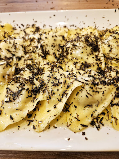 I had the pleasure of trying the ravioli, and they were absolutely delicious! The courteous owner carefully shaved fresh truffles at the table – an unforgettable taste! For dessert, I ordered the homemade tiramisu – simply divine.