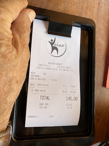 El Restaurante Kaixo presenta su menú de fin de semana por un precio asequible de 35 €, con opciones de carne disponibles por un suplemento adicional. En cuanto a la estética del restaurante, no se utilizan lujosas servilletas de tela o manteles, sino que se ofrece un "salvaplatos" de papel que crea una experiencia de cena relajada y cómoda.